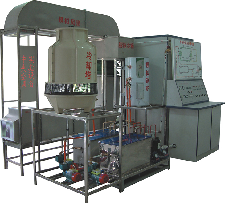 中央空調(diào)實(shí)驗(yàn)設(shè)備是將中央空調(diào)微型化,同時保持整個中央空調(diào)系統(tǒng)的完整性和合理性。本實(shí)驗(yàn)系統(tǒng)采用微機(jī)控制能單獨(dú)演示中央空調(diào)的夏天制冷、冬天制熱循環(huán),控制系統(tǒng)由電腦控制與手動控制二種方法演示。為了解各種參數(shù)的變化情況和系統(tǒng)的工作狀況。實(shí)驗(yàn)臺增加了一些輔導(dǎo)結(jié)構(gòu),使其能人為地制造各種實(shí)際中可產(chǎn)生的系統(tǒng)故障,方便學(xué)員了解故障的產(chǎn)生和排除故障的方法。