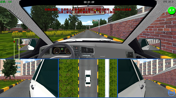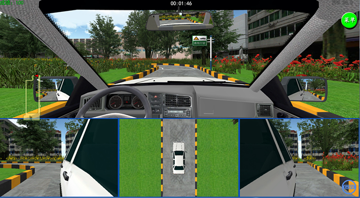 3)具有座艙和顯示器的互動視景系統(tǒng),并具有錯誤駕駛記錄和提示功能。互動視景系統(tǒng)應(yīng)具備圖形工作站、顯示設(shè)備、音響功放等組成,可實(shí)現(xiàn)駕駛員前景140度以上視角的屏幕顯示。