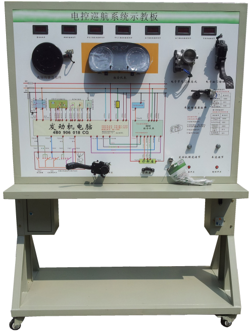 操縱油門踏板位置傳感器可實現(xiàn)節(jié)氣門開度的調(diào),可真實展示電子節(jié)氣門的工作原理和工作過程;操縱巡航控制開關(guān)和車速信號,設定巡航狀態(tài),引擎控制單元可對節(jié)氣門開度進行調(diào)節(jié),真實演示汽車電子巡航系統(tǒng)的工作過程和工作原理。