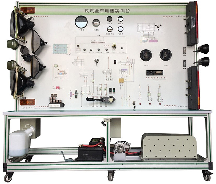 該設(shè)備采用泰安TA4360柴油機(jī)整車電器實(shí)物為基礎(chǔ),充分展示汽車儀表系統(tǒng)、燈光系統(tǒng)、雨刮系統(tǒng)、喇叭系統(tǒng)、發(fā)動(dòng)機(jī)電器系統(tǒng)、起動(dòng)系統(tǒng)和充電系統(tǒng)等汽車電器各系統(tǒng)的組成結(jié)構(gòu)和工作過程。